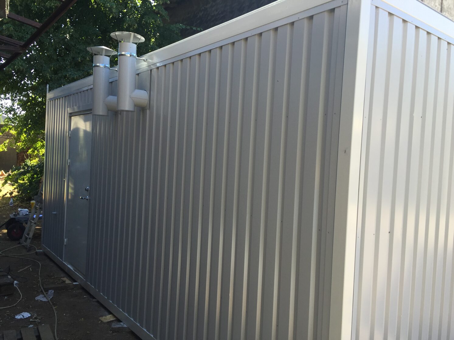 - Ready-made modules, delivered with pre-assembled equipment at the factory - complete with concrete slab with trap and slope, container and filters